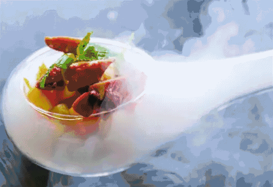 “分子料理就是將食物的味道以分子為單位進行處理和呈現(xiàn),打破食材原貌重新搭配和塑形,創(chuàng)造出與眾不同的食用體驗…”這個定義聽起來是不是一臉懵逼,看不懂沒關系,我來舉個栗子吧。