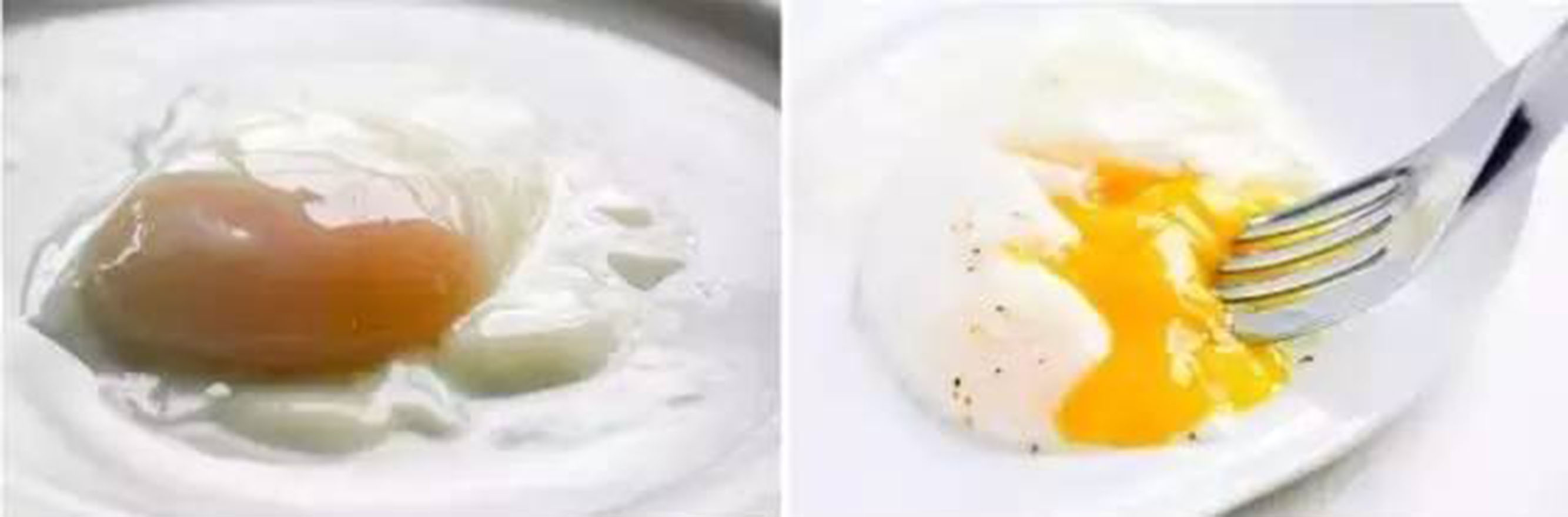 這道分子料理的蛋黃是用芒果做的,蛋白是用酸奶做的,吃起來卻不是雞蛋的味道,而是芒果和酸奶的清香。這是分子料理中球化技術展現(xiàn)食物和傳統(tǒng)形態(tài)不同的代表。