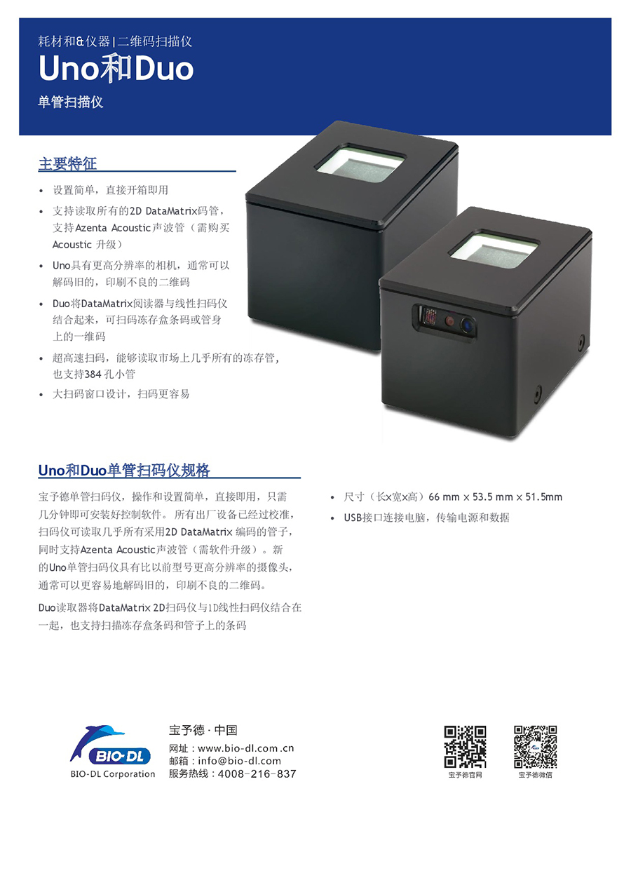 Uno和Duo 單管掃描儀